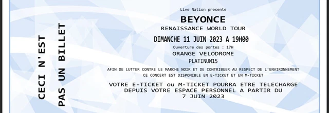 Billet Platinum 6 Concert Beyonce Velodrome 11 06 2023 Eur 450 00 Picclick Fr